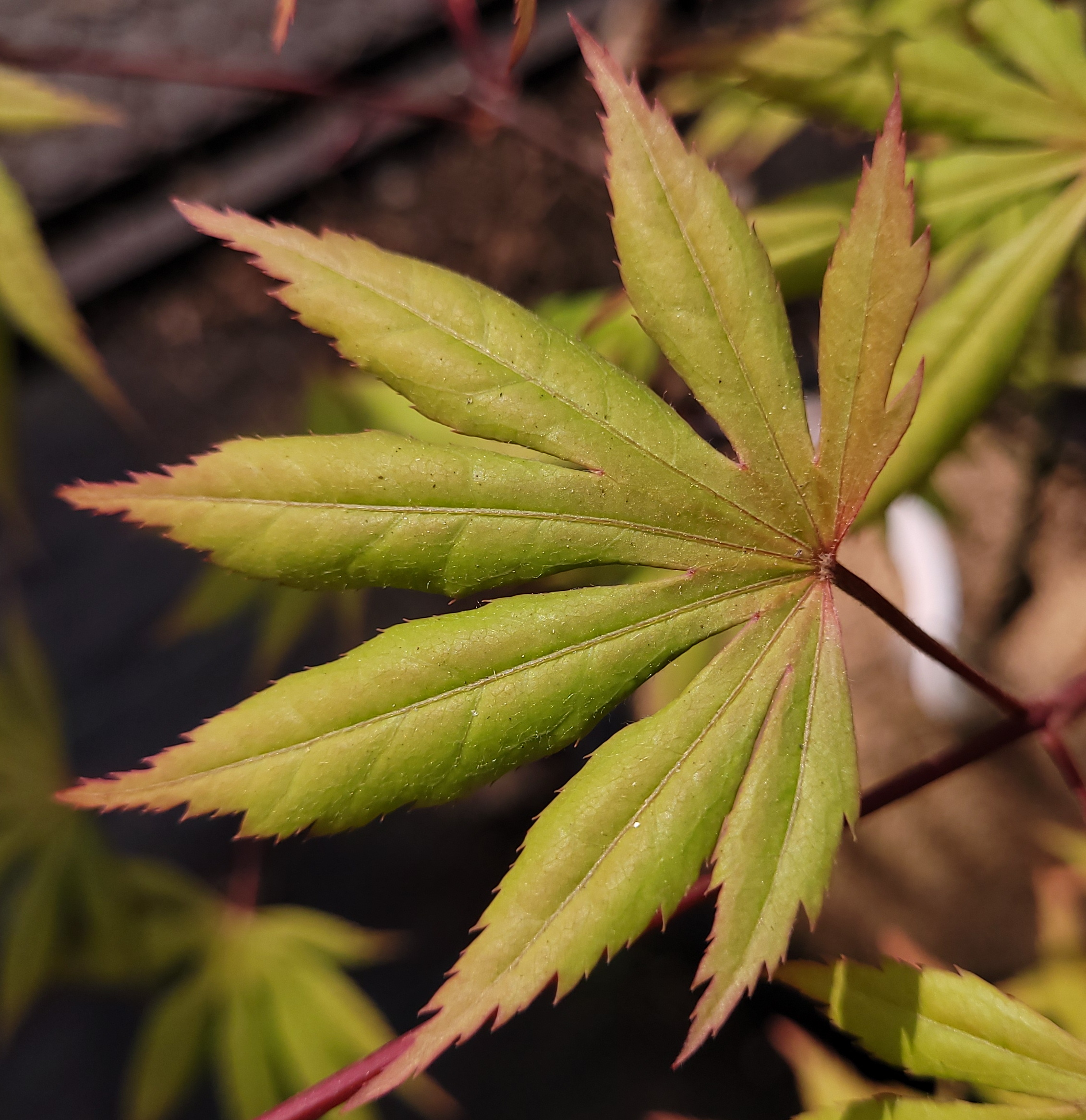 Très bel érable au feuillage brun orangé au printemps, vert foncé l’été avec les nouvelles pousses rouges puis jaune orangé à orangé rouge l’automne.