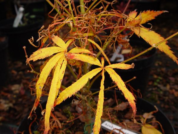 Petit érable assez compact au feuillage linéaire d’un vert tendre au printemps, plus foncé l’été et jaune orange en automne.