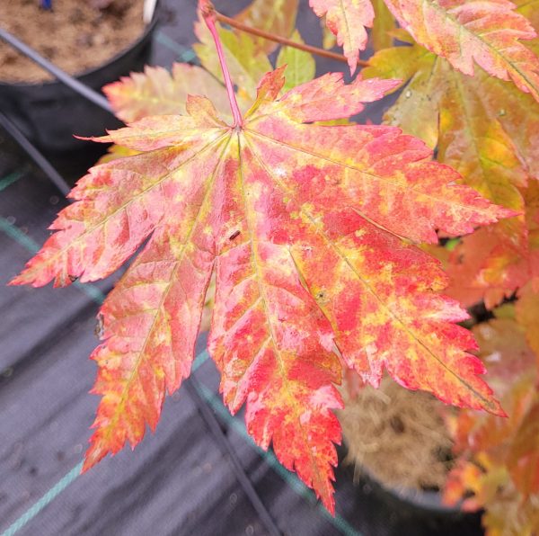 Magnifique érable provenant d’un semi de shirasawanum Moonrise. Son feuillage est de couleur rouge bronze au printemps, vert jaune l’été et rouge orangé en automne.
