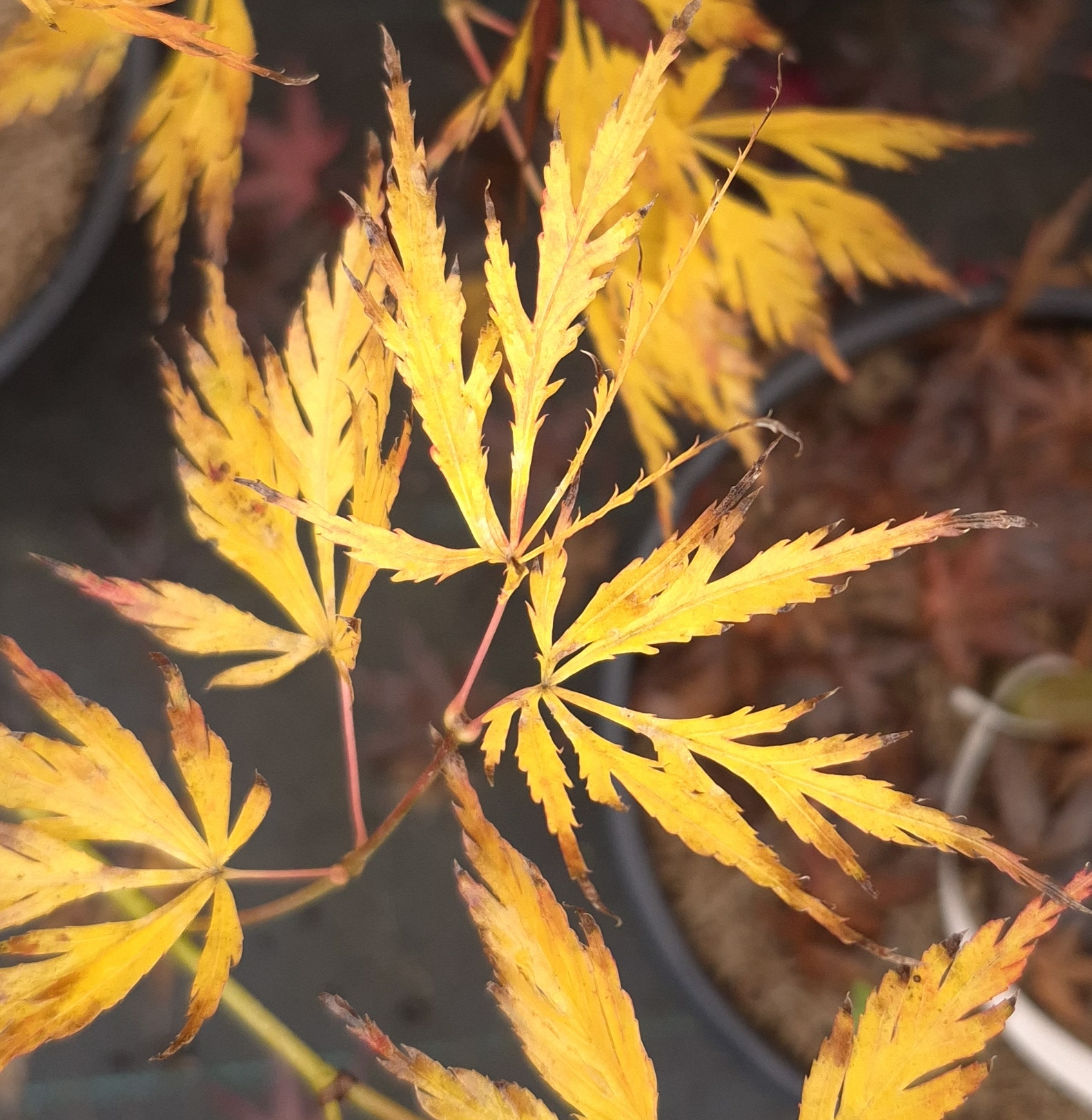 Magnifique érable lacinié similaire au dissectum viridis mais dont les bois sont beaucoup plus tortueux. Son feuillage est vert tendre au printemps, vert clair l’été et jaune à orange en automne.