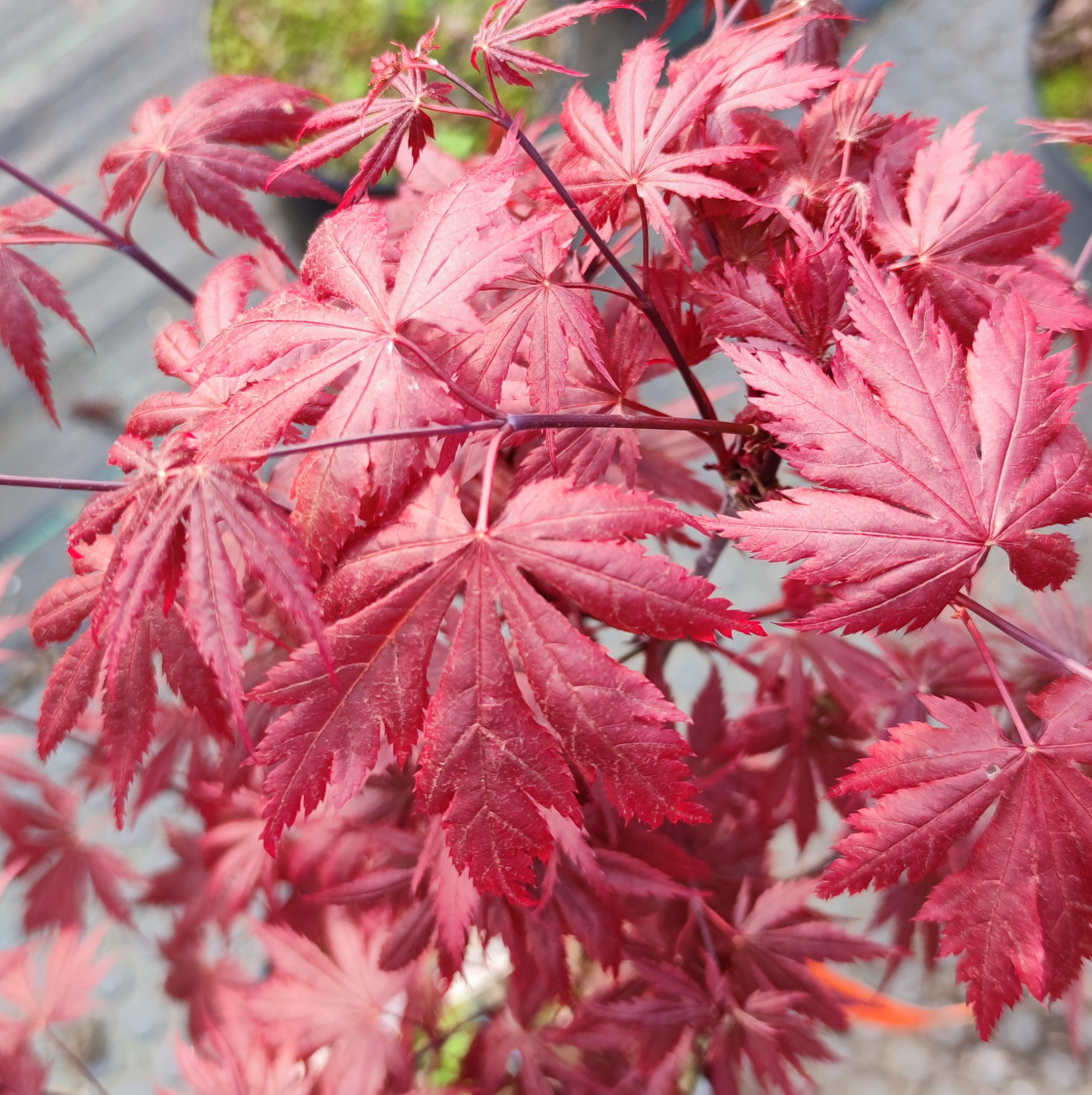 Superbe érable à grandes feuilles découpées ( comme certains matsumurae chez les palmatum) pour un shirasawanum. Son feuillage est rouge vif au printemps, rouge pourpre l’été puis rouge orange écarlate en automne.