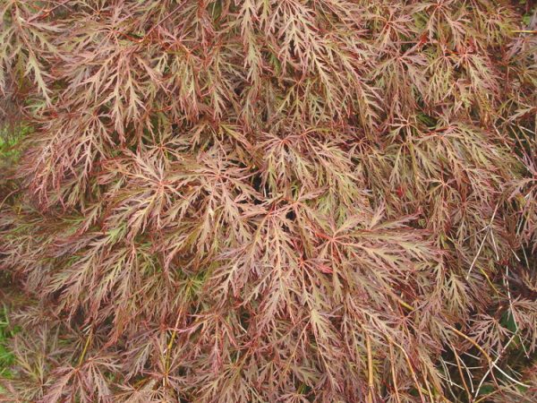 Magnifique érable lacinié au feuillage rouge pourpre velu au printemps, rouge bronze l’été et rouge écarlate à rouge orangé en automne.