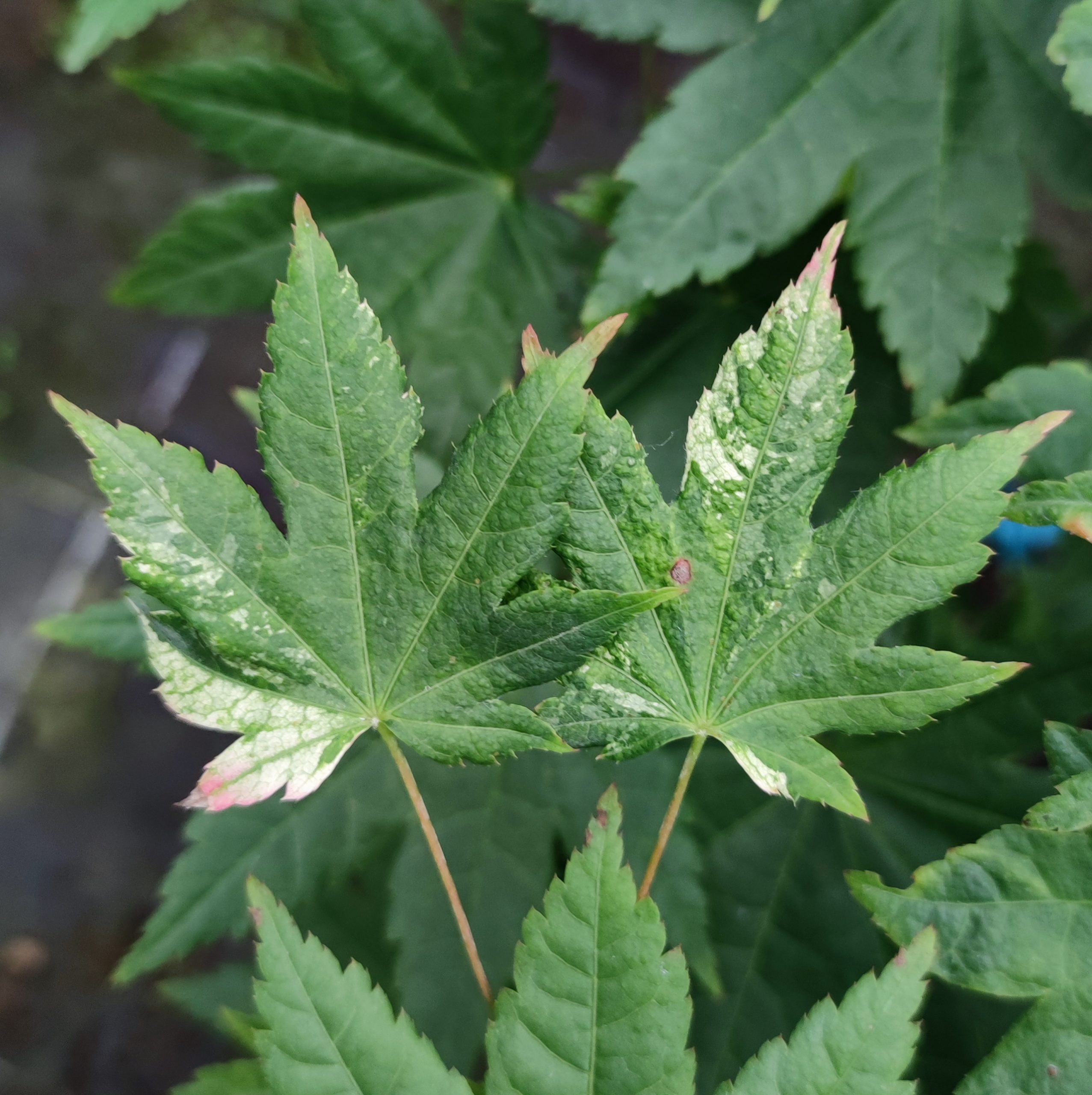 Magnifique érable au feuillage rose pâle nervuré de vert tendre brillant au printemps, vert clair nervuré vert jaune l’été et rouge orangé l’automne. Son feuillage est proche des amoenum et ses samares sont plus grandes que celles des palmatum.